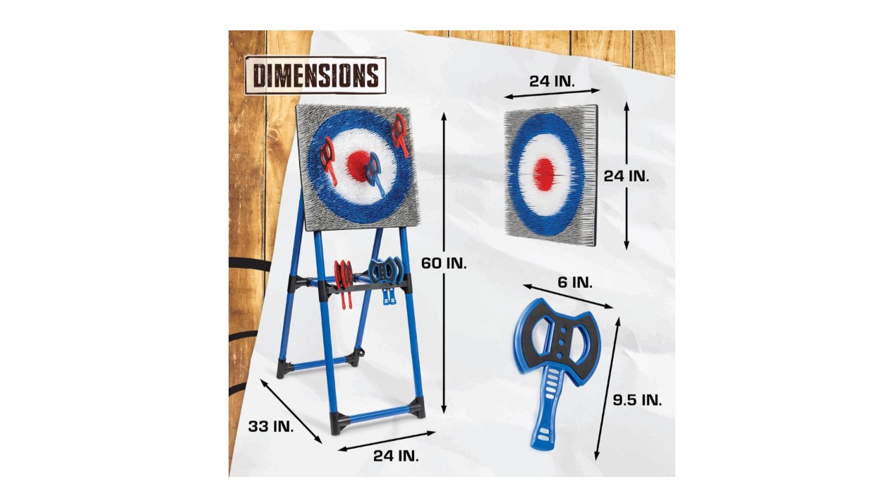 - So, grab your safety axe, take aim at the target, and go for the bullseye. This heavy-duty axe throwing target can be set up in the grass, sand, or pavement and is perfect for playing at the beach, park, or in your own backyard.
