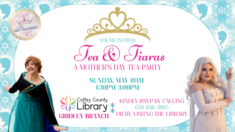 You’re Invited to Tea & Tiaras! Join us to celebrate Mother’s Day with a magical tea party filled with sweet moments and lots of royal fun! Enjoy a delightful afternoon with tea & snacks, a story, craft, song, and game, with a special visit from two royal sisters! Kindly RSVP by calling 620-836-3905 or stop […]