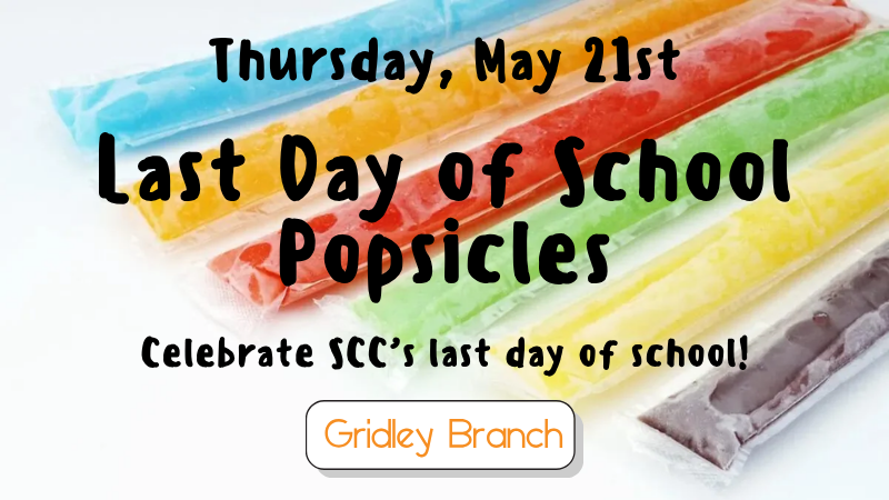 Stop by to grab a popsicle to celebrate SCC's last day of school!