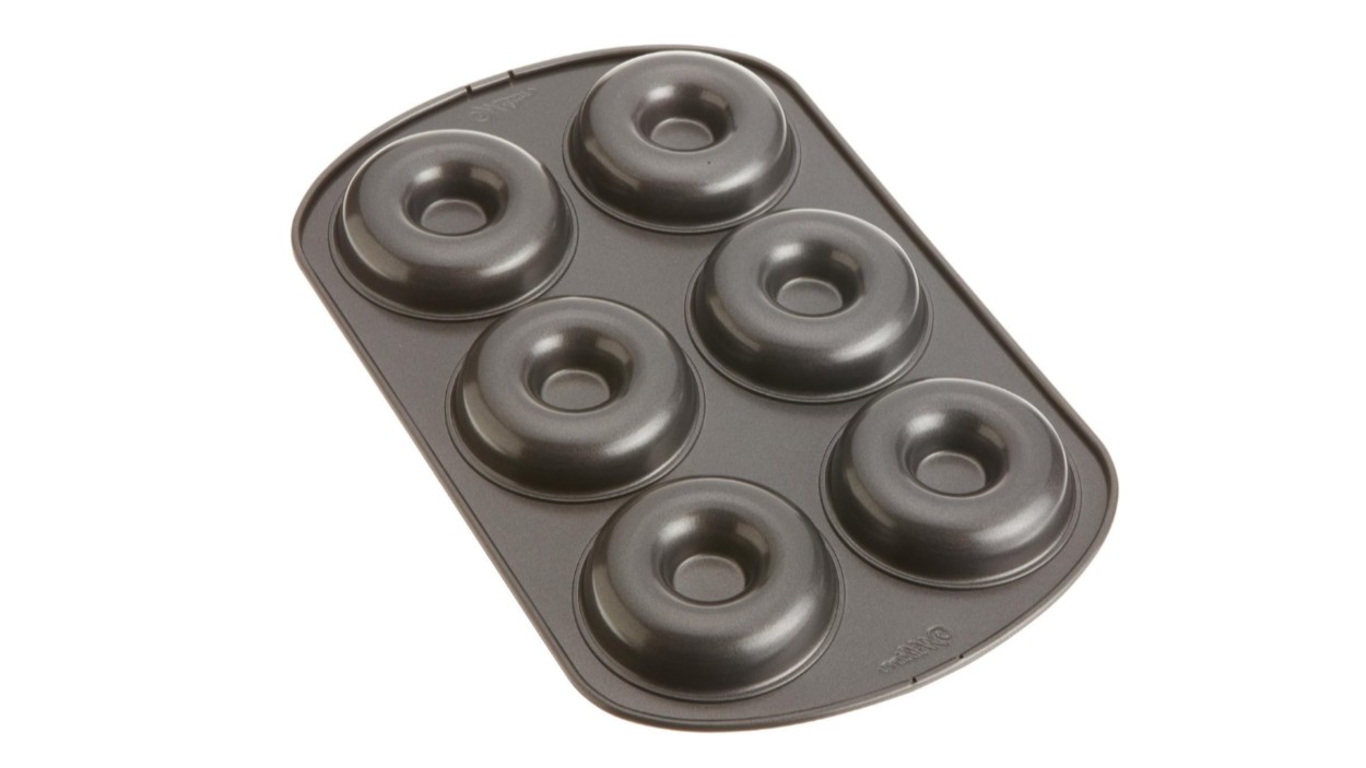 - Make a half or a full dozen of donuts for breakfast with this donut baking sheet set