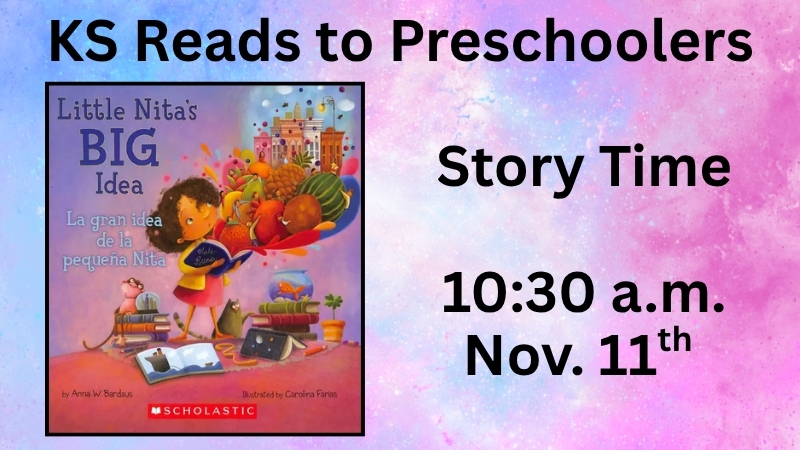 Kansas Reads to Preschoolers Story Time on November 11th at 10:30 a.m.