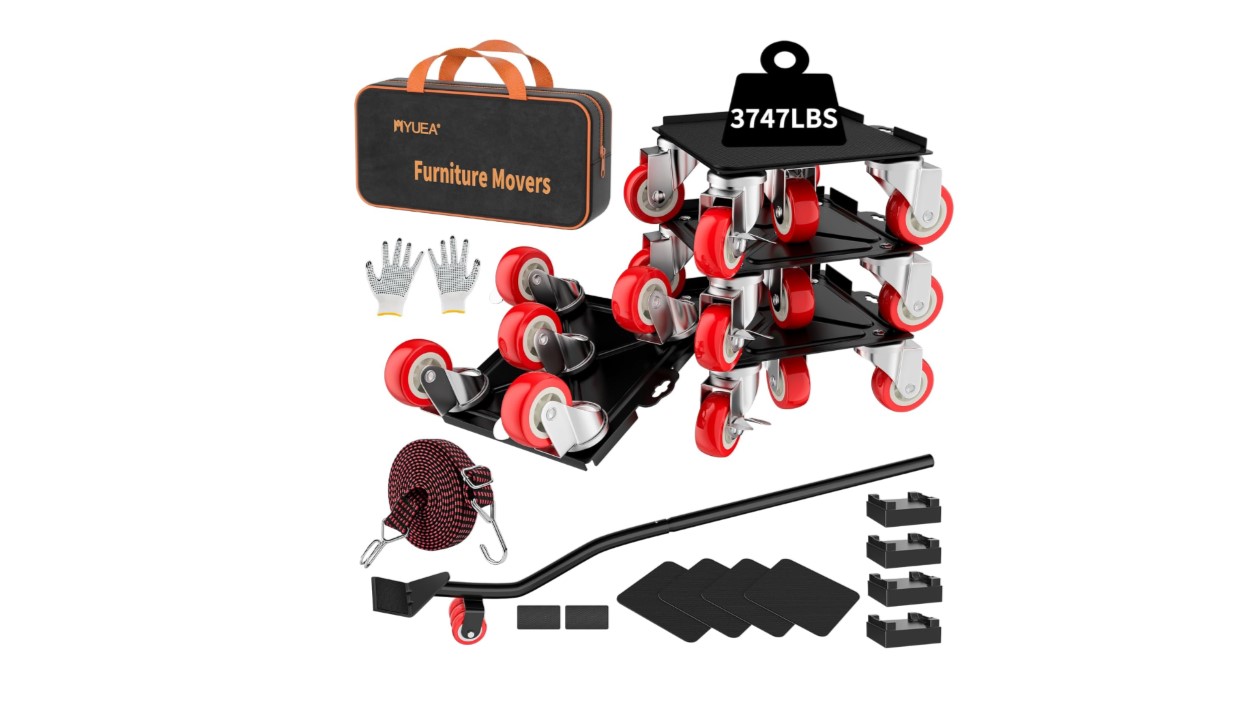 - Heavy duty furniture dolly made of thickened carbon steel,not easily deformed,reinforced steel base,widened and thickened silent rubber wheels can move flexibly without hurting the floor,longer carbon steel pry bar can save your strength and lift objects easily.