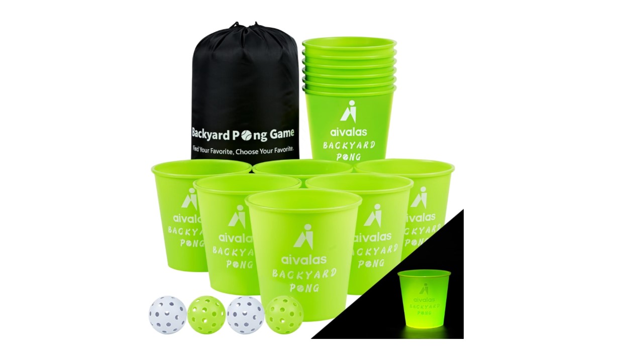 - Great for Outdoor games for adults and family. Teach your kids, and family how to play the pong game you grew up loving! Instructions and fun games HOUSE RULES included. 12 Large 9 inch tall buckets, 2 Standard Balls and 2 Beach Balls included.