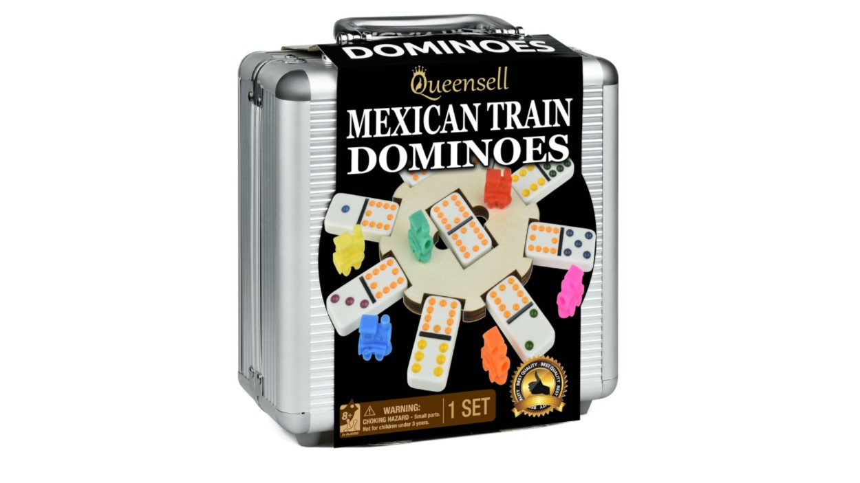 - Mexican train dominoes set comes with everything you need to have a good time with family and friends including 91 Classic Double Tiles, 9 Plastic Trains, and a Wood Hub in a Reusable Aluminum Carry Case to make sure you have enough to play with 2+ Players