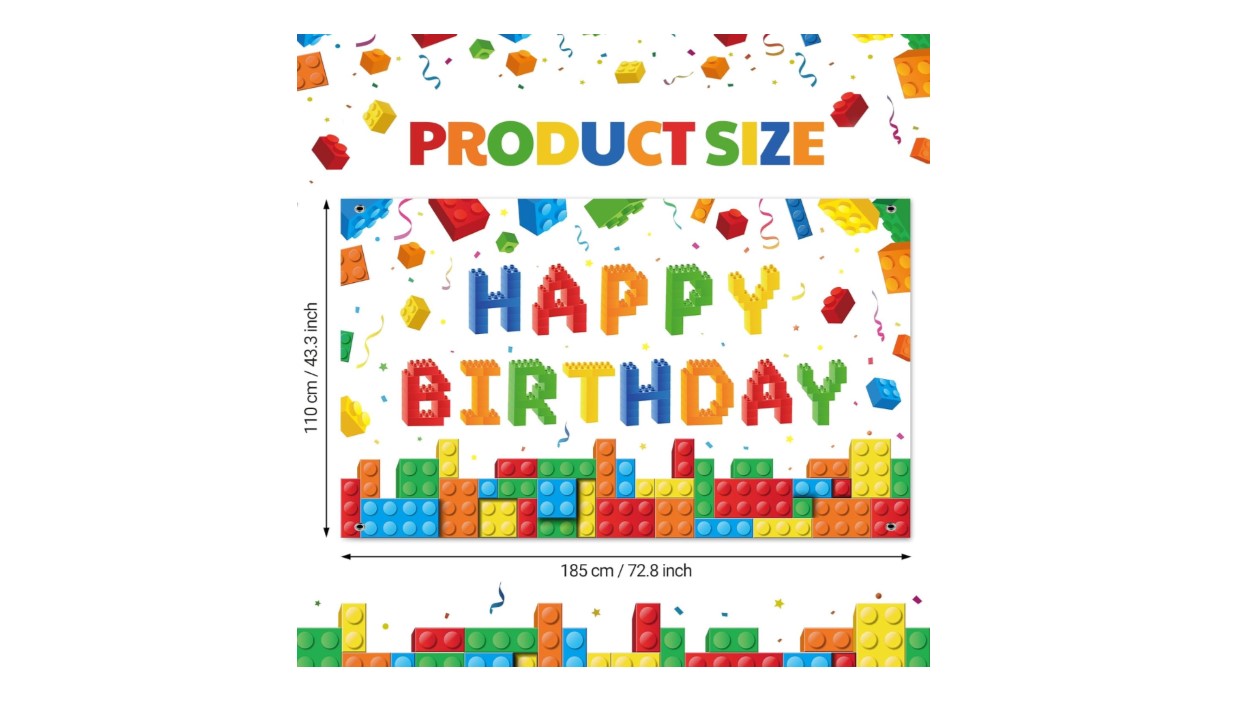 - Easy to Assemble: designed with 4 copper holes distributing in the 4 corners, the building blocks backdrop can be hung easily with the rope in the package, save your time and energy; You can hang it up the wall, window, garden, yard, door, and then enjoy the party time