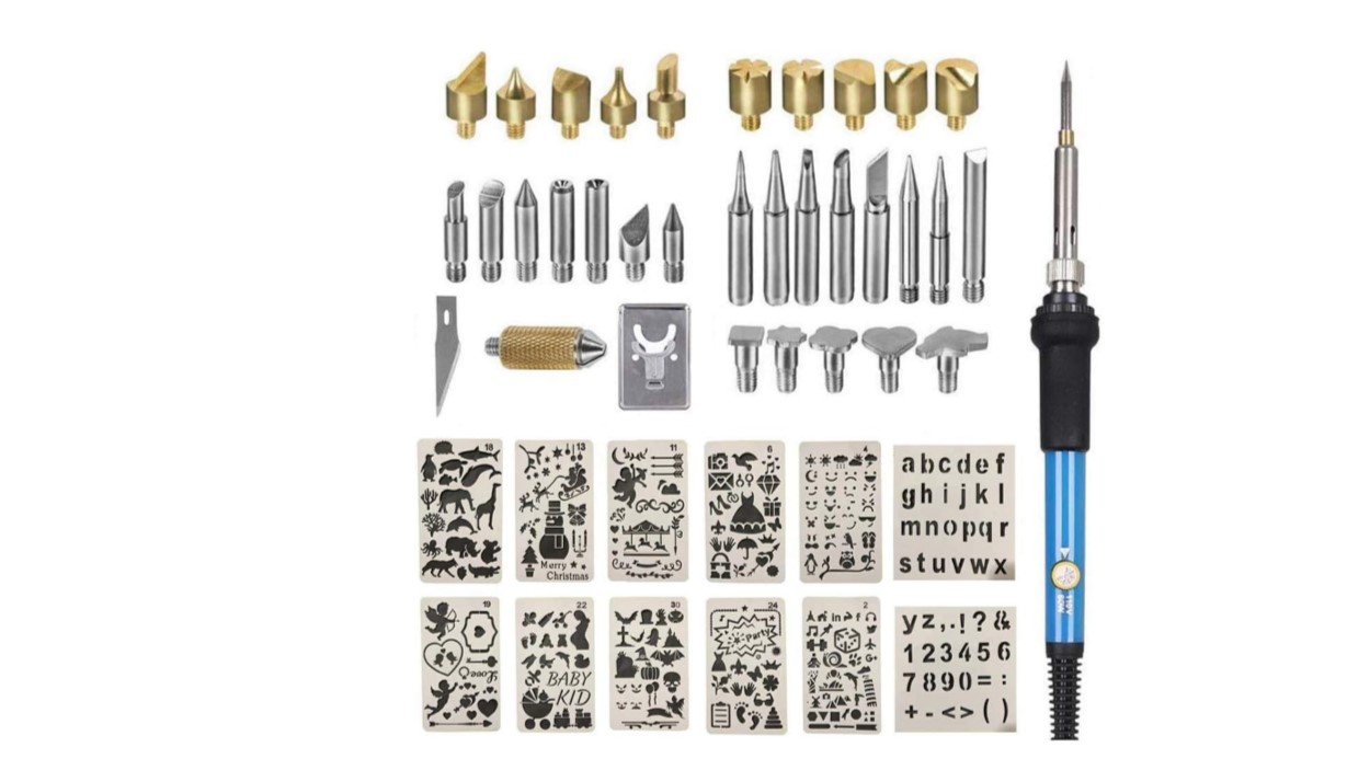 - PACKAGE INCLUDES: 1 x Pyrography Woodburning Pen, 20 x Wood Burning Tips, 10 x Solder Tips, 1 x Hot Knife, 1 x Wood Burning Pen Holder ,12 x Stencils (numbers, letters and basic symbols set)